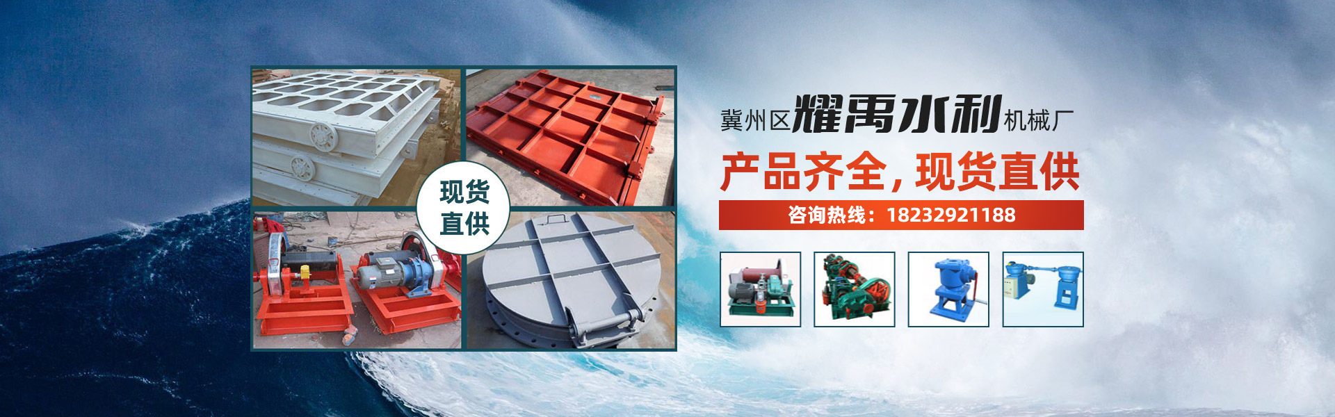 我廠主導產品有: 一、LQ型螺桿式啟閉機,小噸位有平推式和側搖式,可帶機鎖裝置,大噸位(5T-60T)有手動及手電兩用式,直聯式,可配有高度行程及過載保護裝置。 二、鑄鐵閘門(0.2米-6米)有單向止水,雙向止水,該產品具有耐腐蝕,止水效果好,安裝維護簡單,使用壽命長等特點。 三、卷揚式啟閉機(5T-250T),有固定和移動式,分單吊點及雙吊點式,手動及手電兩用式,可配有過載保護及上下極限裝置。 四、鋼制閘門造型各異,按用戶要求生產制作。 五、攔污柵及GQ型清污機用于泵站,電站及水渠攔截清除水中漂浮物、沉淀物等。 六、止水橡皮,橋梁伸縮縫、橡膠支座均通過 , 及橡膠研究所化驗,所有項目均達到國標要求。